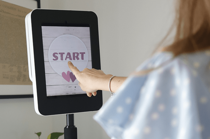 Delivery: The Fotobox will be delivered by UPS 1–3 working days before your event. You will receive a tracking code by email. - Setup and use: Set up the stand, attach the unit, activate the touchscreen and the fun can begin.